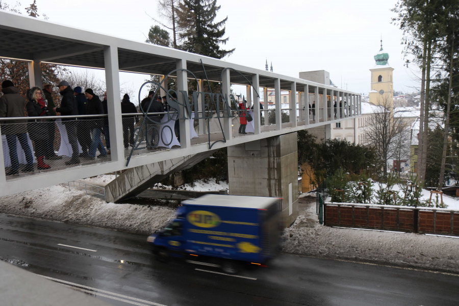Dočkali jsme se, nový nadchod přes silnici I/35 u polikliniky je hotový a ve čtvrtek 22. prosince byl předán k užívání občanům. Jedná se o moderní stavbu z pohledového betonu, která zajistí bezbariérové a pohodlné spojení s centrem města. Díky navržené nosné konstrukci, která z dálky připomíná kříž, je lávka zastřešená a poskytuje tak pěším plný komfort. „Konstrukce vypadá velmi jednoduše, ale jednoduchá není. Není tam nic schovaného, vše má nějakou funkci,“ podotkl architekt Tomáš Koumar. Zajímavostí stavby je nejen její celkový moderní vzhled, ale i umělecky vyvedený nápis Smetana. Poukazuje na litomyšlského rodáka Bedřicha Smetanu a projekt Smetana 200, kterým si Litomyšl za dva roky připomene a oslaví 200 let od narození hudebního skladatele. Lávka o délce 56 m a šířce 3 m slouží zároveň jako atraktivní místo pro vyhlídku na historické centrum města. Nový nadchod je osvícený, vybavený kamerami a především nabízí díky výtahu bezbariérový přechod I/35. Výtah je k dispozici všem zdarma a bude v provozu od 5 do 22 hodin, aby ho neničili vandalové. Majitelé tzv. Euroklíče (tedy typicky lidé se zdravotním postižením) ho ale budou moct užívat 24 hodin denně. Výtahovou šachtu zdobí kresby české výtvarnice Ivany Šrámkové.
