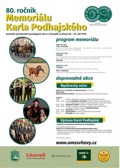 Ve dnech 28. – 30. září 2018 se koná 80. ročník Memoriálu Karla Podhajského. Jeho uspořádáním byl pověřen Okresní myslivecký spolek Svitavy. Tradičně bude celý memoriál probíhat v Litomyšli – rodišti Karla Podhajského. Centrem bude zámek a jeho bezprostřední okolí.