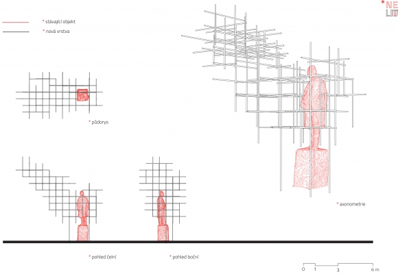 Matěj Hájek, Jindřich Ráftl, Jan Tůma: NELIT(D), struktura z povrchově upravených ocelových trubek připomínající mříže.