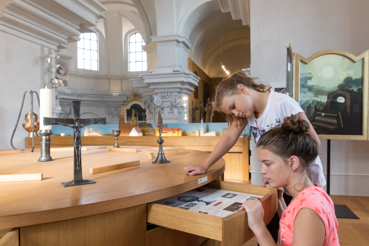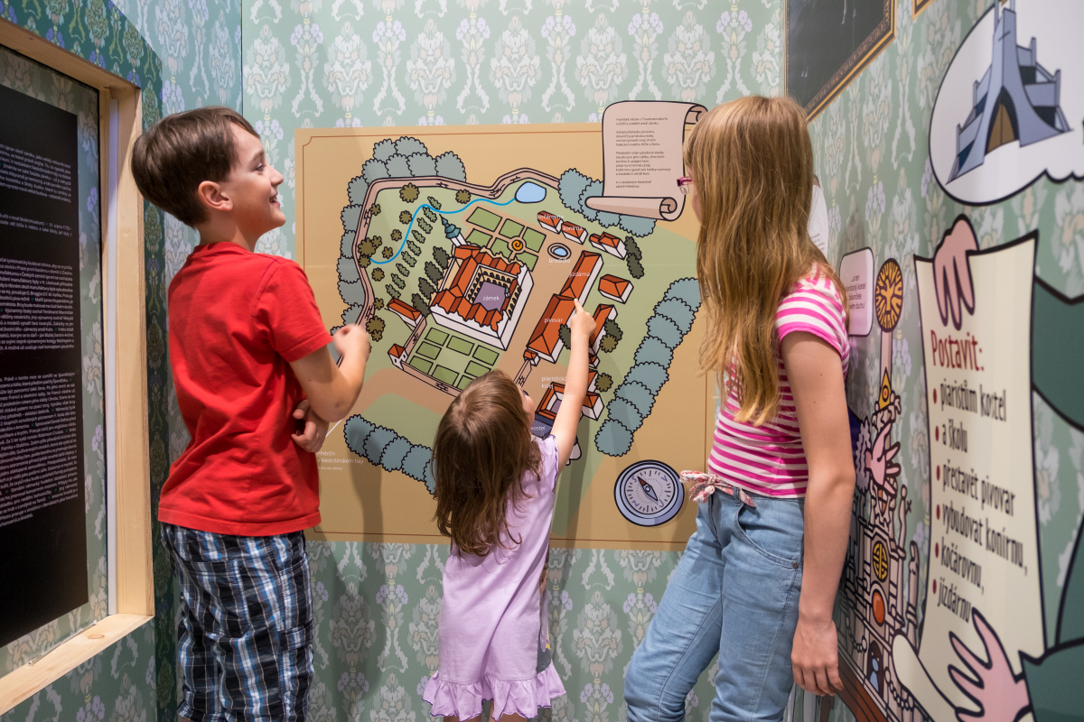 Labyrint historií zámku – Herní panely s hýblátky a tajnými průchody vás seznámí s životem dvořanů i významnými osobnostmi zámku.