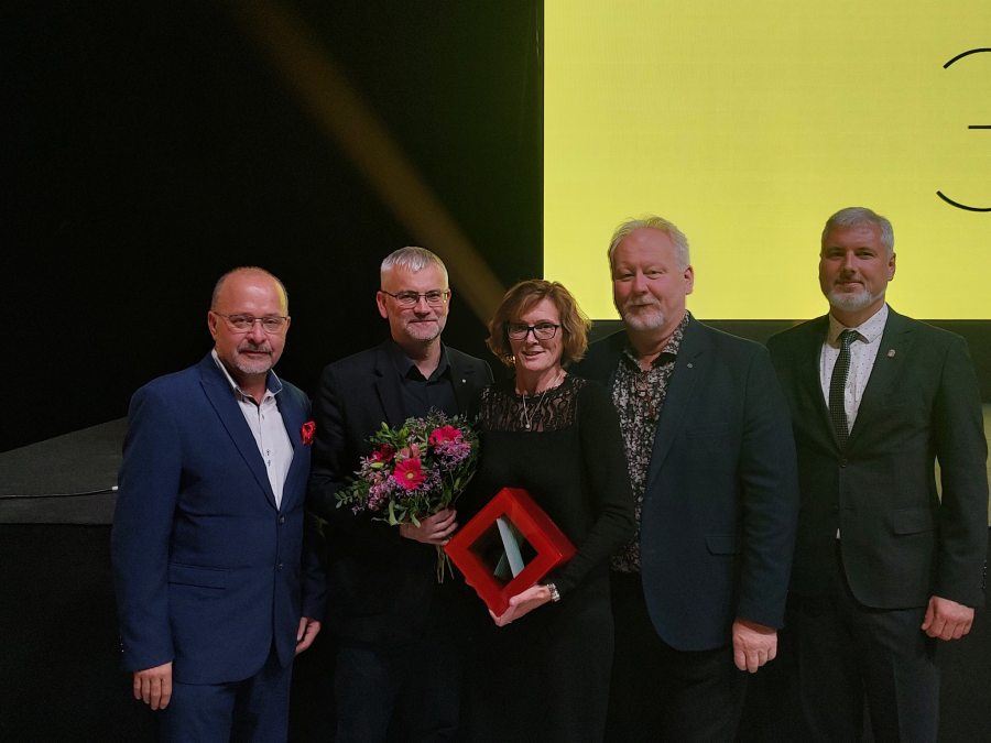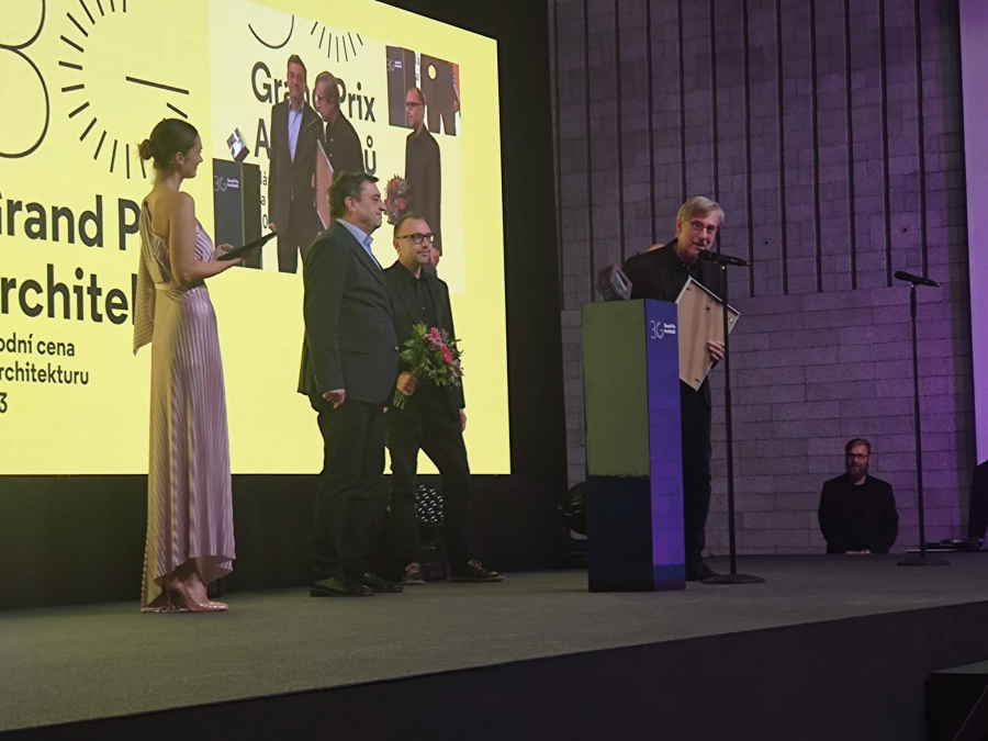 30. října se zástupci města ve Veletržním paláci v Praze zúčastnili slavnostního Galavečera spojeného s předáváním ocenění Grand Prix architektů 2023. Cenu za celoživotní dílo - ikonickou velkou červenou kostku získala paní architektka Zdeňka Vydrová, která již třicet let působí v Litomyšli na pozici Městské architektky. K významnému ocenění jí blahopřejeme a zároveň děkujeme za dlouhodobou, kvalitní a příjemnou spolupráci. Paní architektku přijeli na vyhlášení podpořit pan starosta Daniel Brýdl a emeritní starostové Radomil Kašpar a Michal Kortyš.