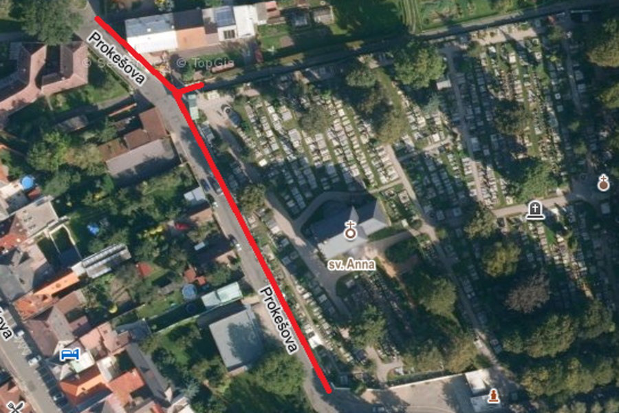 * AKTUALIZACE 14. ČERVNA: Při rekonstrukci chodníku kolem hřbitova musí být také opraveny uliční vpusti dešťové kanalizace. Z tohoto důvodu bude část ulice ve dnech 17. a 18. června dočasně uzavřena, lokalitou bude umožněn průjezd vozidlům integrovaného záchranného systému a autobusům.