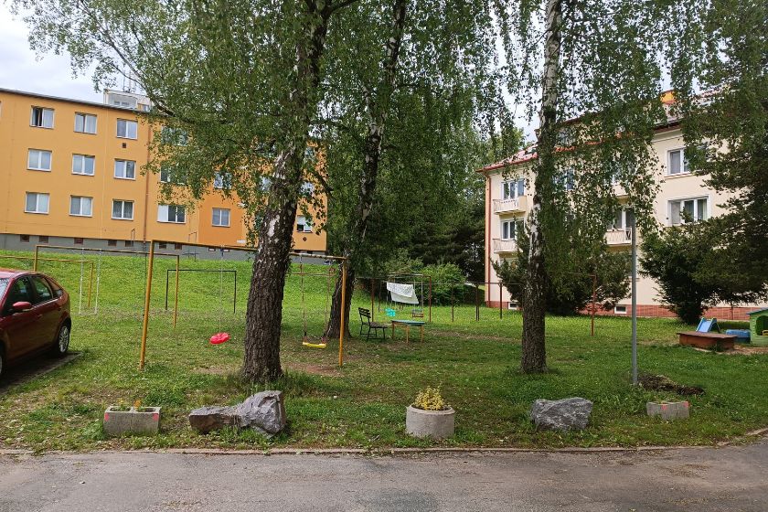 Vnitroblok na sídlišti mezi ulicemi 17. listopadu, 9. května a U Školek vytváří specifický polouzavřený prostor mezi 13 budovami - bytovými i rodinnými domy. Jedná se o poměrně velký veřejný prostor, který nabízí možnosti dalšího využití pro obyvatele okolních domů. Současný stav lokality to však příliš neumožňuje. Architekti T.Matoušková, M.Šafářová a J.Matoušek se zabývali potenciálem tohoto území a zpracovali pro město studii možné revitalizace. Zabývali se analýzou stávajícího stavu, řešením odvodu dešťové vody, revitalizací zeleně, mobiliářem, parkováním, bezpečností a funkčností komunikací i možnostmi komunitního využití