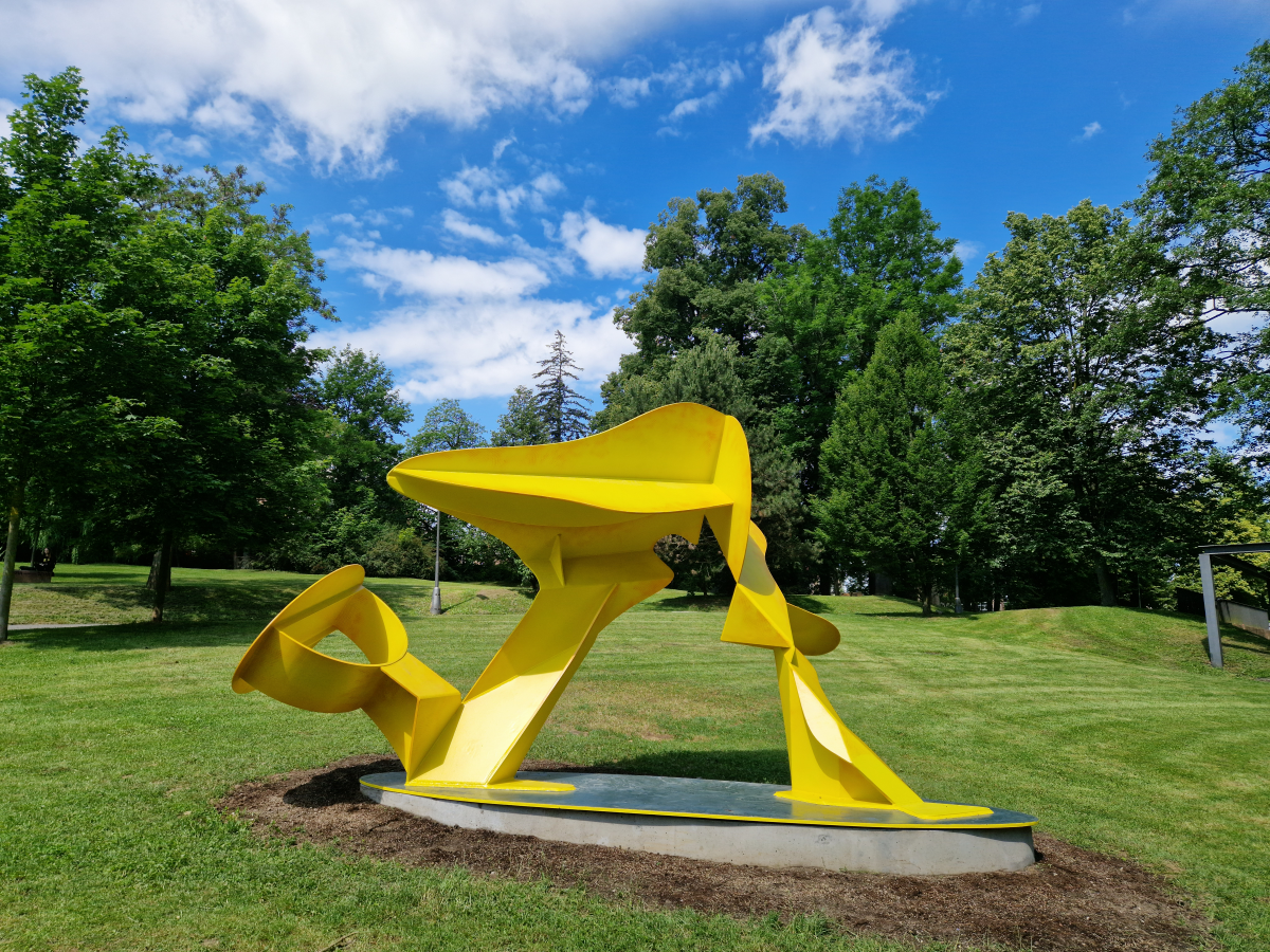 objekt z leštěného nerezu vytvořený ke 200. výročí narození B. Smetany, Klášterní zahrady