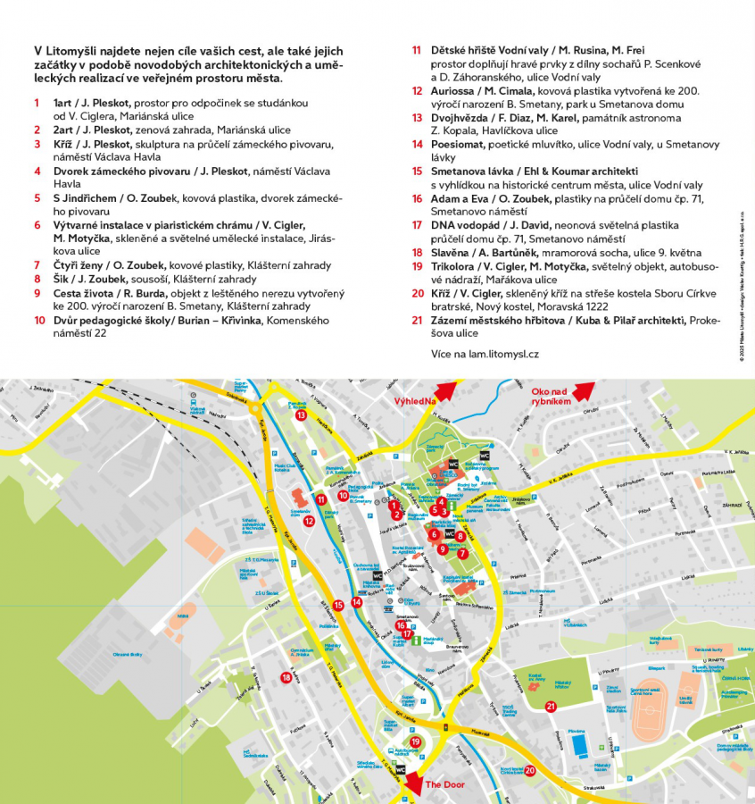Mimo Cílů cest Litomyšl nabízí i jejich začátky v podobě množství výjimečných architektonických a uměleckých intervencí ve veřejném prostoru. Mezi autory těchto realizací patří Josef Pleskot, Václav Cigler, Olbram Zoubek nebo David Černý. Ať už procházíte kolem Smetanovy lávky, objevujete skleněné instalace V. Ciglera v piaristickém chrámu, nebo se necháte okouzlit Poesiomatem, genius loci města vás jistě osloví. Projděte si Litomyšl jako nikdy předtím! S očima dokořán a myslí otevřenou současnému umění a architektuře.
