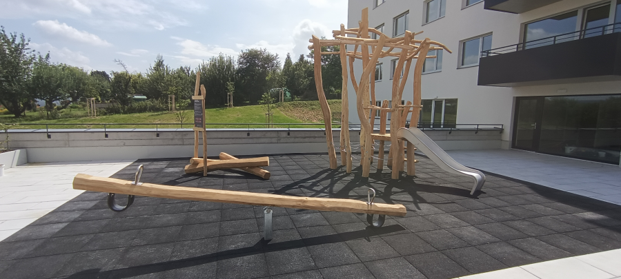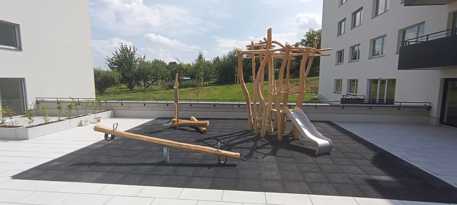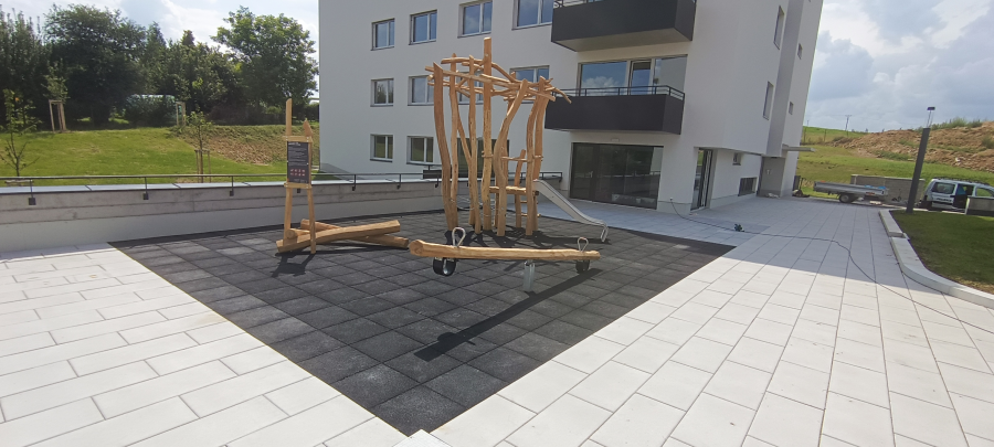 Na střeše garáží jsou instalovány herní prvky pro nejmenší děti
