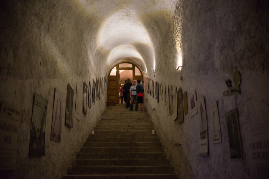 Sklepení bylo dlouhá léta veřejnosti nepřístupné. Po rekonstrukci v sedmdesátých letech 20. století bylo připraveno jako bezpečnostní kryt pro civilní obyvatelstvo a prakticky utajeno. Teprve po společenských změnách v devadesátých letech se otevřelo návštěvníkům - nejprve v rámci velkého happeningu, později sem památkový ústav umístil výstavu utrpného práva. Expozice, patřící spíše do středověkého hradu, se nesetkala s velkým návštěvnickým úspěchem, vlhké prostředí se také záhy podepsalo na vystavených exponátech, proto se snadno ujala nabídka sochaře Olbrama Zoubka na umístění sbírky jeho soch do těchto atraktivních prostor. Při prohlídce lze využít audiprůvodce, díky němuž vás expozicí provede sám autor.