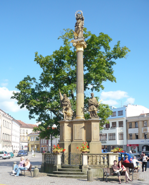 Na Smetanově náměstí před domem čp. 72, v němž se nachází informační centrum, stojí mariánský sloup. Zdobí ho sochy sv. Václava, sv. Jana Nepomuckého a Panny Marie od kameníka Antonína Appelera. Morový sloup podle návrhu Giovanni Battisty Alliprandiho byl postaven roku 1716 jako poděkování za to, že Litomyšl nepostihly morové rány z roku 1713. Až do roku 1894 stála nedaleko morového sloupu kašna z roku 1740, ozdobená od roku 1767 sochou sv. Floriána. Tato socha byla po zrušení kašny přemístěna do ulice Rektora Stříteského pod děkanství, kde stojí dodnes.