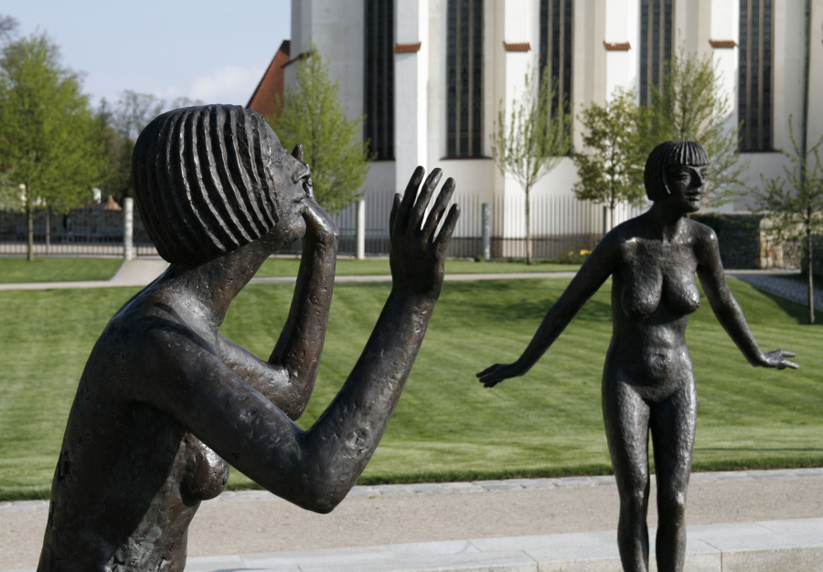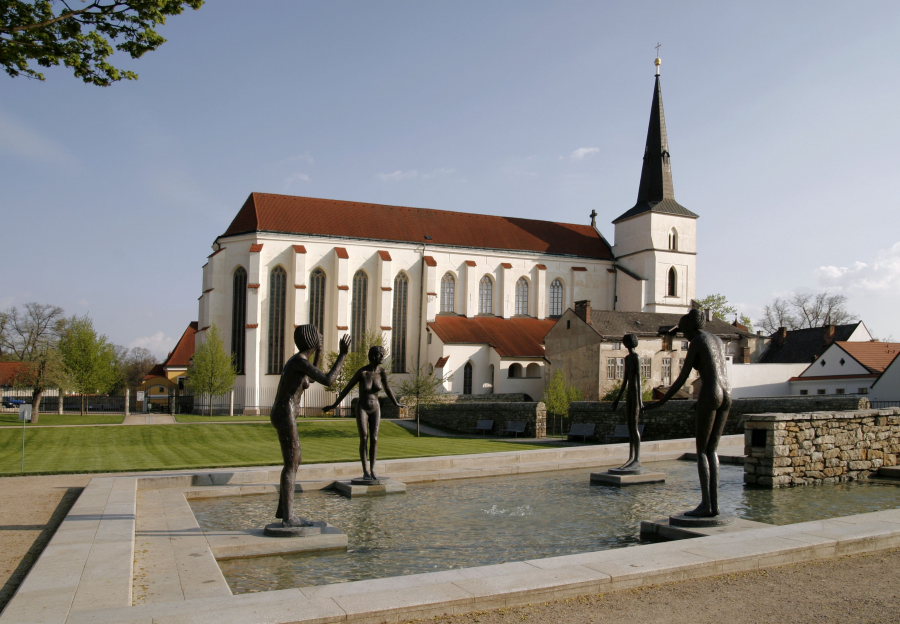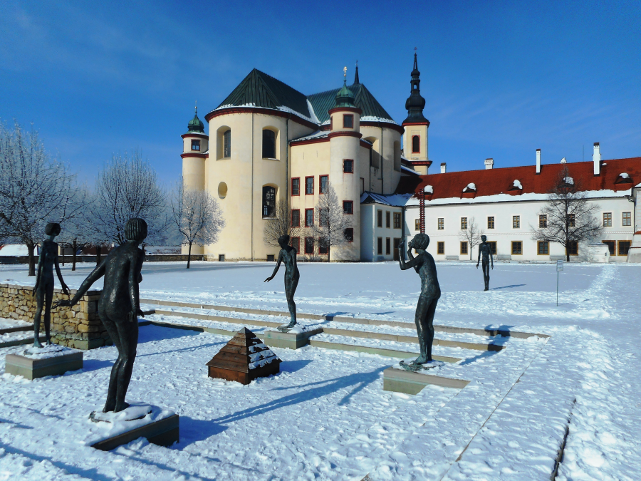 Za piaristickou kolejí směrem ke kostelu Povýšení sv. Kříže se rozkládají Klášterní zahrady. V roce 2000 zde vznikl díky citlivé moderní přestavbě odpočinkový městský park s fontánou. Okolo malého bazénku v Klášterních zahradách se nachází čtyři ženské postavy a opodál na trávníku jedna mužská postava. Toto sousoší je dílem Olbrama Zoubka, jehož život a dílo je s Litomyšlí už neodmyslitelně spjato.
