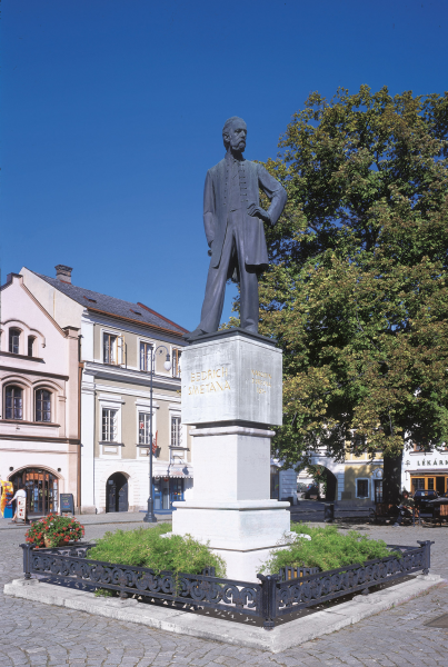 Bronzová socha hudebního skladatele a litomyšlského rodáka byla postavena roku 1924 na počest 100. výročí narození Bedřicha Smetany. Autorem pomníku je český sochař Jan Štursa. Dle autora je zde skladatel znázorněn v poloze, kdy naslouchá svému vnitřnímu hlasu.