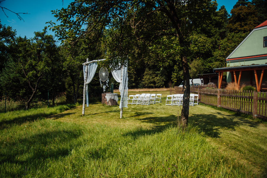 Na zahradě slouží ubytovaným dětské hřiště, ohniště a pergola s posezením.