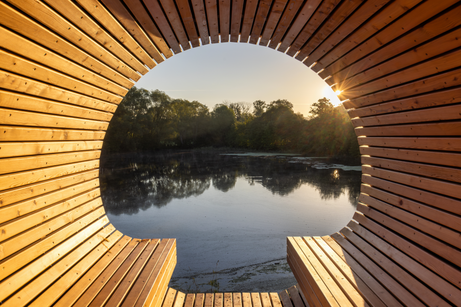 Odpočívadlo u Hlubokého rybníka (známého také jako Stará plovárna) od architektonické kanceláře OVA architekti je součástí projektu Cíle cest, který se zaměřuje na budování drobné architektury v okolí města. Za tímto účelem je každý rok osloven jeden vítěz soutěže České ceny za architekturu organizované Českou komorou architektů. Zadáním je, dle vlastního uvážení a v docházkové vzdálenosti od centra města, navrhnout drobný urbanistický prvek s rozpočtem do 0,5 milionu korun.