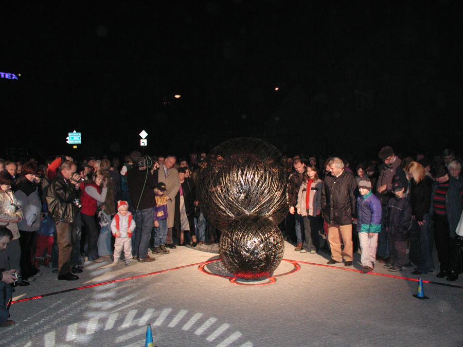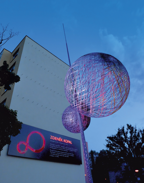 Obnovená plastika dvojhvězdy je umístěna na subtilní karbonové tyči ve výšce 3,5 metrů nad zemí. Toto umístění posiluje ideu pozorování hvězdné oblohy ze země a plastiku je možné díky technologickému konceptu užití karbonových vláken vnímat proti obloze. Světelné panely vyznačují přesný půdorys domu, kde se Zdeněk Kopal narodil zároveň pomocí textu přibližují jeho celoživotní vědeckou práci.