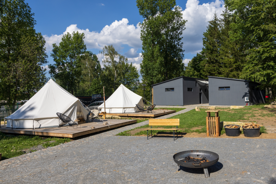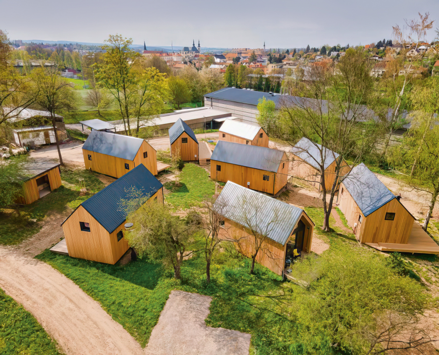 Ve zrekonstruovaném autokempu vzniklo 22 chatek různých velikostí. Jedná se o dřevostavby na zemních vrutech s pobytovými terasami. Jasný architektonický výraz, logické uspořádání a důraz na kvalitu jsou srovnatelné s podobnými zařízeními ve skandinávských zemích. Autorem návrhu je architektka R. M. Bílková, část areálu navrhla firma Partero. Areál vlastněný městem zrekonstruoval a provozuje soukromý vlastník.
