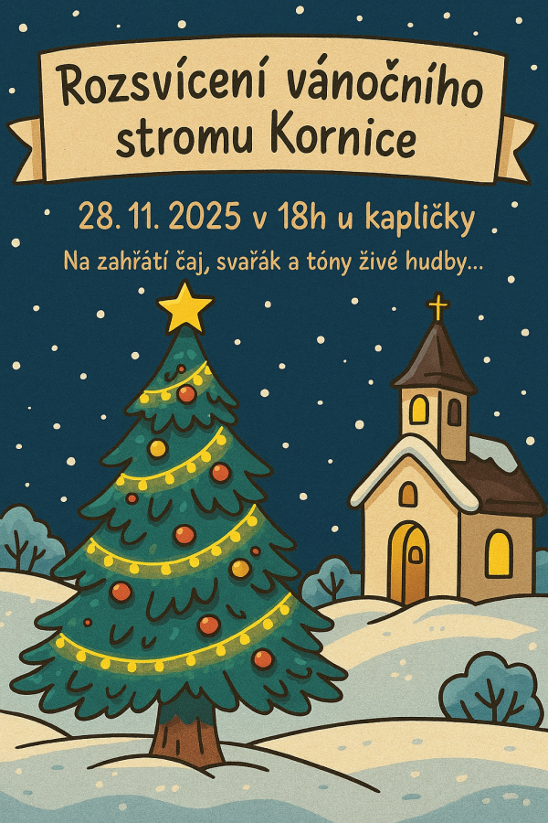 .....adventní čas se blíží, přijměte prosím vřelé pozvání na Rozsvícení vánočního stromku u kapličky v Kornicích. Sejdeme se v pátek 28. listopadu 2025 v 18 hodin u kapličky :-)