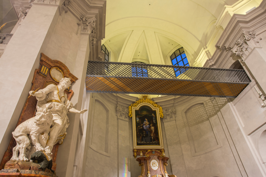 Samostatnou dráhu architekta začal Giovanni Battista Alliprandi jako dvorní architekt rodiny Černínů. Od roku 1697 bydlel v Praze, kde byl roku 1706 jmenován nejvyšším císařským fortifikačním stavitelem. O tři roky později se stal rodinným architektem hrabat Trauttmannsdorfů a díky tomu se dostal do Litomyšle. Ve službách Trauttmannsdorfů rekonstruoval i pražský palác a cestoval opakovaně také do Vídně. Z východočeských staveb je nejvýznamnější špitální komplex v Kuksu. Alliprandi se specializoval především na projektování zámecké architektury a šlechtických paláců, v menší míře je autorem sakrálních staveb. V roce 1714 navrhl litomyšlský chrám Nalezení sv. Kříže, který financoval právě hrabě František Trauttmannsdorf. Alliprandi zemřel v Litomyšli roku 1720 a je prý pochován ve zdejším kapitulním kostele.