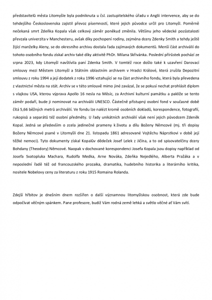 Níže najdete projev Pana Josefa Kopeckého, vedoucího litomyšlského archivu, který přednesl při pietním aktu na litomyšlském hřbitově.