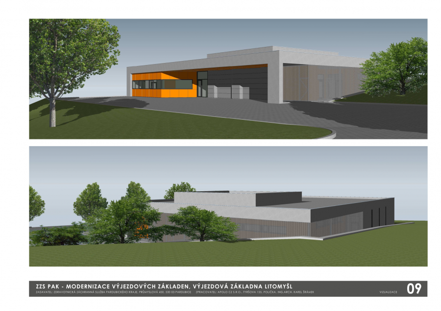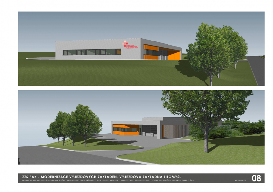 Výjezdová základna bude sloužit pro jednu posádku RLP. V objektu je navržena jedna garáž pro dvě vozidla. Provozně je objekt rozdělen na garáž, k níž jsou přičleněny související prostory skladů vybavení vozidel, desinfekce a místnosti údržby, a na prostory pro posádku. Hlavní vstup do objektu je řešen do části pro posádku z manipulační plochy před garáží , která je situována před průčelím objektu orientovaném k silnici III/36021. Vstup do objektu je řešen přes zádveří, které navazuje na chodbu. Z chodby jsou řešeny přístupy do garáže, přípravny, úklidové komory, prádelny, technické místnosti, sociálního zařízení, oddělených šaten pro muže a ženy se sprchami, odpočíváren posádek a denní místnosti, na kterou navazuje kancelář staniční sestry a kuchyňka.