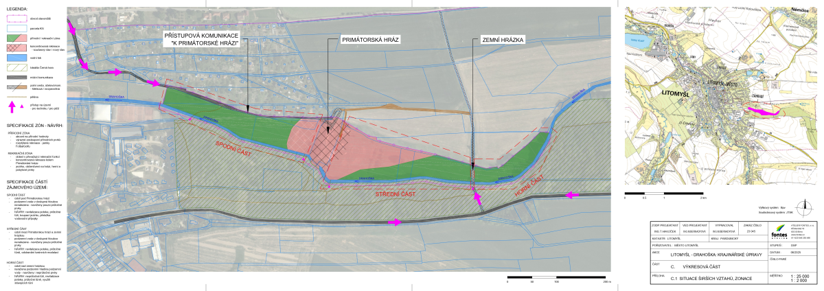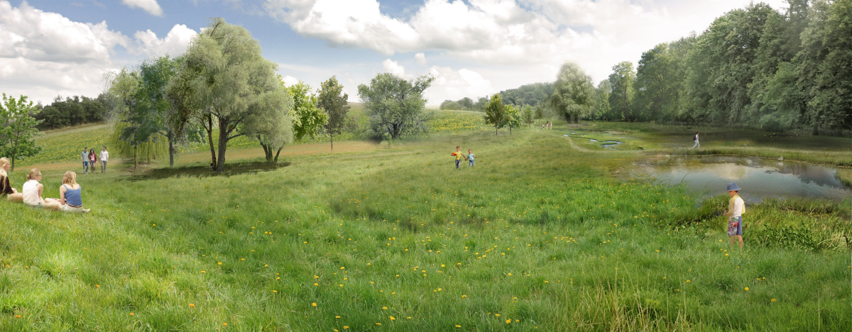 Území by mělo být pomyslně rozděleno na zónu rekreační, kde je umožněno intenzivnější využití a zónu přírodní, kde jsou akcentovány přírodní prvky ovšem s umožněním extenzivní rekreace v podobě fotbalgolfových jamek FotbalParku (většina území). V údolí Drahošky dojde k úpravě koryta řeky, v jeho okolí vzniknou nové tůně a mokřady a bude vysazena zeleň přispívající k návratu k přirozené biodiverzitě. Pro posílení rekreační funkce lokality zde bude osazen nový mobiliář a v prostoru hřiště pod hrází vznikne do budoucna přírodní biotop s možností koupání.
