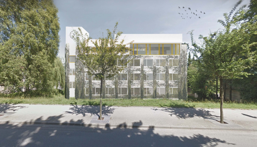 Zapuštěná okna uvnitř místností 4.10 a 4.13 budou ve vzniklém zálivu v exteriéru doplněny zelení. Fasáda bude v bílé omítce doplněna treláží pro popínavé rostliny. Nové střechy budou ploché, zelené nebo s fotovoltaikou, popř. obojí.