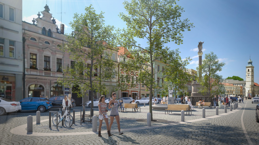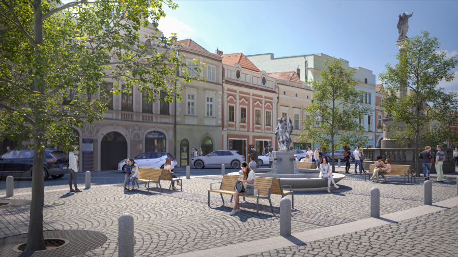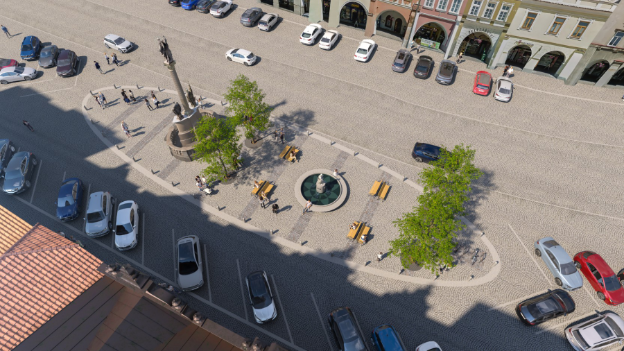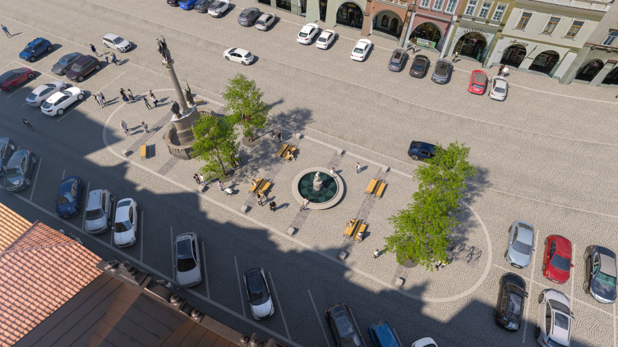 V prostoru budou dále umístěny lavičky s opěrákem, tak aby bylo možné sledovat jak kašnu, tak i morový sloup, stojany na kola a odpadkové koše. Výsledkem by mělo být jednoduché řešení, vytvářející atraktivní, srozumitelný a bezpečný prostor pro místní i návštěvníky města. Prostor, který nijak nekonkuruje významné památce - morovému sloupu a okolním historickým fasádám domů, ale naopak je vhodně doplňuje a akcentuje výjimečnost barokní památky.