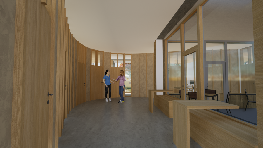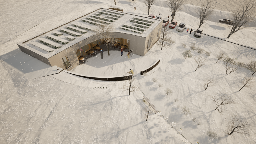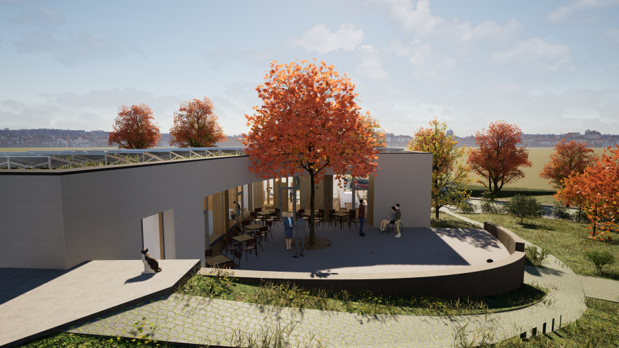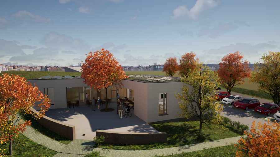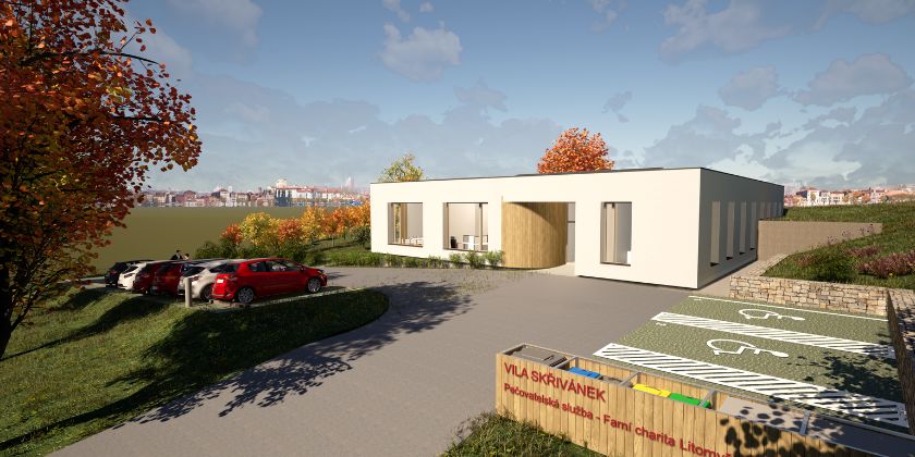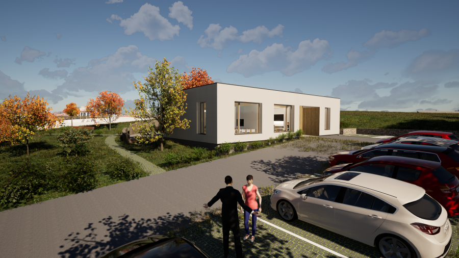 Jednopodlažní budova poskytne komfortní zázemí pro pečovatelky, nabídne prostory pro ambulantní služby i dostatečné plochy pro parkování služebních vozidel.