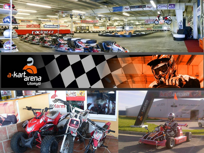 A-kart arénu najdete v průmyslové zóně směrem na Svitavy, v těsné blízkosti silnice E35. V kryté hale je půjčovna motokár a také půjčovna minibike. Raritou je venkovní část okruhu. Nikde v celé střední Evropě nenajdete výjezd z haly i na venkovní část okruhu. Součástí haly je i bar s kapacitou cca 70 míst, přístupný nejen příznivcům motoristických sportů, ale i široké veřejnosti.