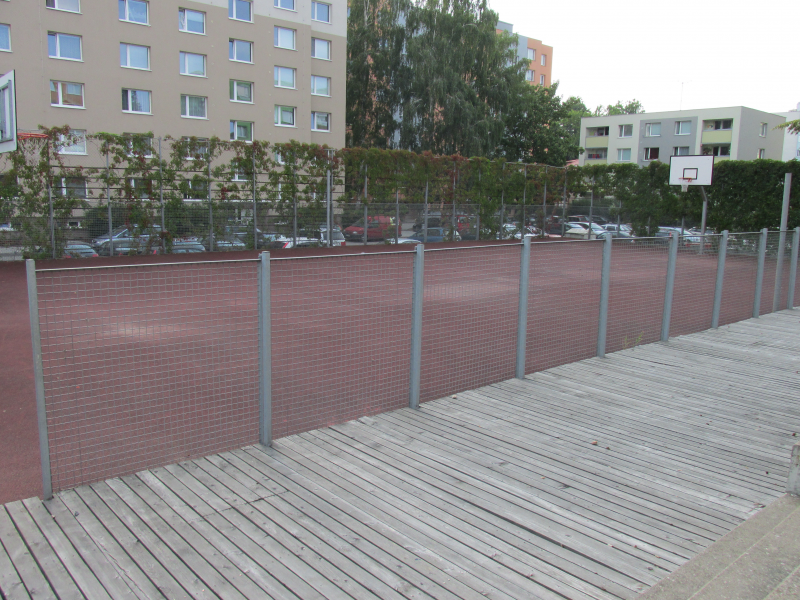 Umělý povrch a oplocení umožňuje hrát basketbal, volejbal, tenis, fotbal