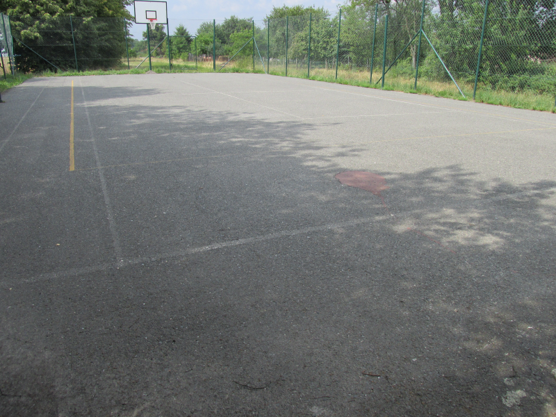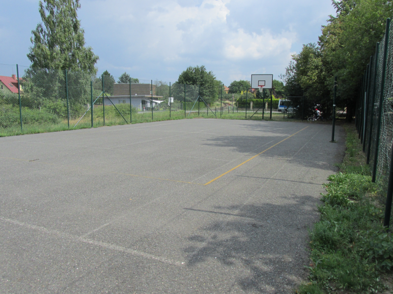 Zpevněná plocha a oplocení umožňuje hrát basketbal, volejbal, tenis, fotbal, streetball, badminton