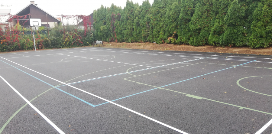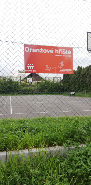 Nové oplocené asfaltové hřiště vhodné pro tenis či basketbal.