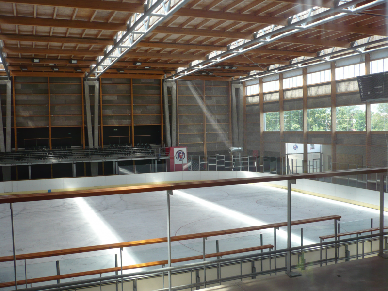 Zimní stadion byl vybudován roku 1977. Tribuna pro 1600 stojících diváků byla postavena v roce 2002 a zastřešen byl stadion v roce 2004 podle projektu Ing. Arch. Aleše Buriana. V říjnu roku 2005 bylo dokončeno opláštění východní a jižní strany, zde vyrostla i nová tribuna pro 220 diváků (160 sedících, 60 stojících). V květnu 2006 pokračovala modernizace opláštěním dvou zbývajících stran (i s průhledem na panorama zámku v západní části). Byla také položena zbrusu nová plocha na in-line hokej, instalována nová výsledková tabule. V létě 2006 proběhla rekonstrukce celého chlazení plochy. V létě 2019 proběhla výměna chladícího zařízení včetně drobných stavebních úprav strojovny.