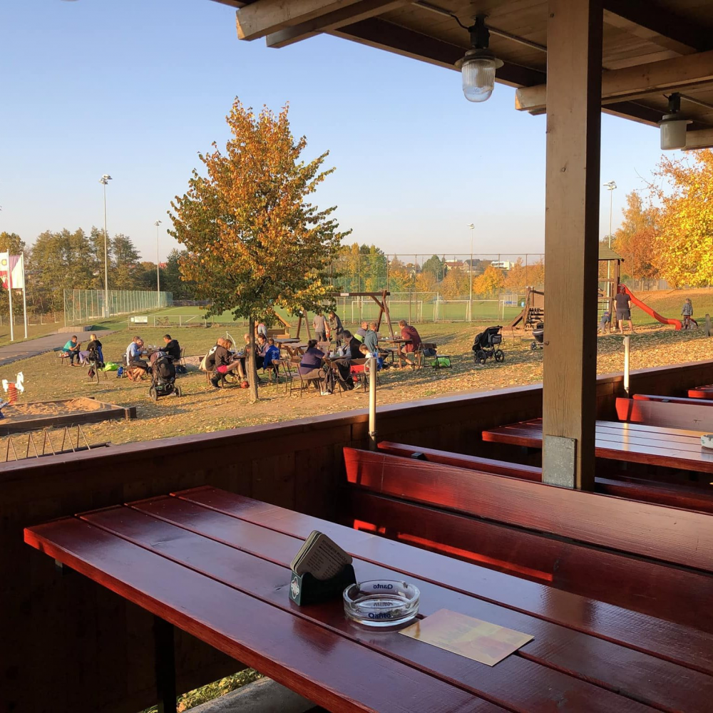 Občerstvení s terasou a dětské hřiště naleznete v areálu Městského stadionu Černá hora.