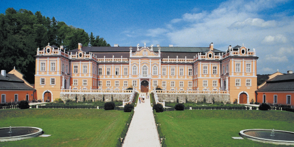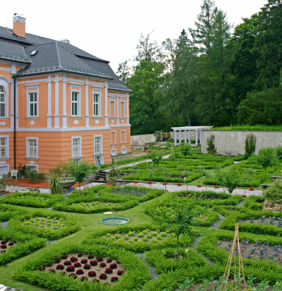 Hrad postaven Z. Kostkou z Postupic v pol. 15 stol. na návrší zvaném Starý zámek. Z kruhového hradu se dochovala jen část hradby, kus zdi a terénní valy. Celé návrší bylo upraveno v park. R. 1767 byla na jižní straně vybudována křížová cesta. Nový zámek stavěl v letech 1774-1777 Jan Antonín Harbuval-Chamaré. K stavbě bylo použito materiálu ze starého hradu. R. 1804 byl dokončen celý rokokový zámecký areál, který se v původní podobě dochoval dodnes (české Versailles). V roce 1997 zámek zakoupili Petr a Magda Kučerovi z Prahy, a od té doby prochází celý zámecký areál rozsáhlou rekonstrukcí a modernizací. Slavnostní otevření zámku se konalo dne 16. června 2001. V rámci prohlídky stálé zámecké expozice uvidíte výjimečnou výstavu Umění nábytku v proměnách staletí a nahlédnete do soukromých prostor majitelů. Zámek je obklopen rozsáhlými pozemky, na kterých současní majitelé založili a stále ještě zakládají rozmanité typy zahrad. V areálu dále můžete navštívit Muzeum motokol a Galerii klobouků. V sezóně je otevřena zámecká restaurace a kavárna v galerii. Nenechte si ujít úžasnou podívanou pro děti i dospělé a navštivte zámeckou farmu.