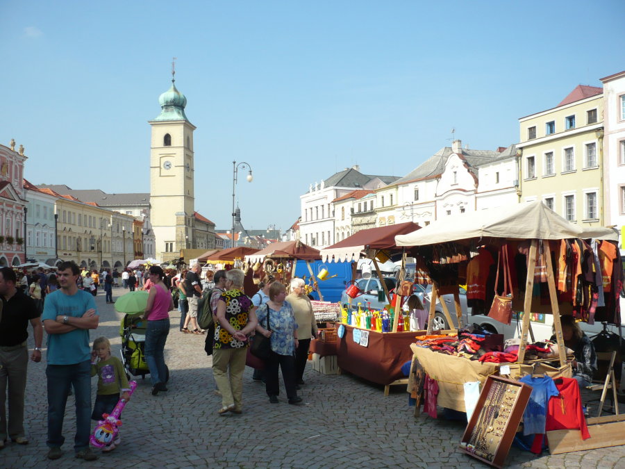 Tradiční řemeslné trhy na Smetanově náměstí a doprovodný hudební program na podiu.