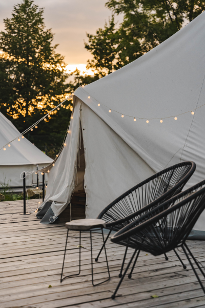 Kapacita: 17 chatek s vlastním sociálním zařízením a 7 glampingových stanů