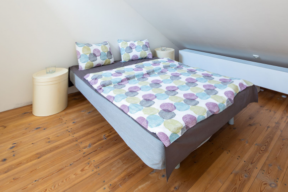 K dispozici jsou celkem tři podkrovní pokoje, které jsou postupně průchozí a ve kterých najdete dvě dvoulůžka a dvě jednoduché matrace, vlastní koupelna se dvěma sprchovými kouty a bezplatná wi-fi.