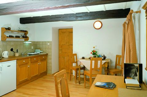 Stylový nábytek, koupelna, WC, připojení na Wi-Fi. Apartmány jsou vybaveny kuchyňkou.