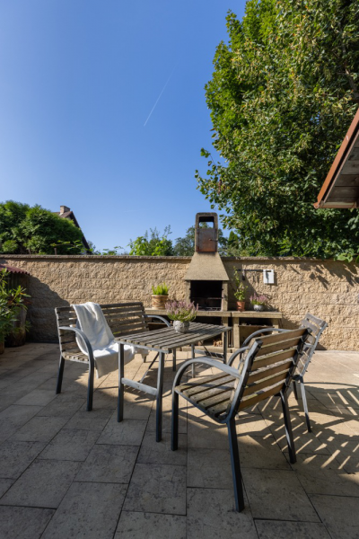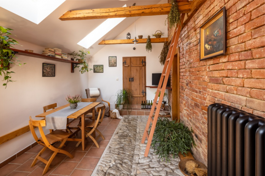 Plně vybavená kuchyňka, možnost objednání snídaní, venkovní krb, krytá zimní zahrada, úschovna kol, parkování na vlastním pozemku. Non–stop provoz.